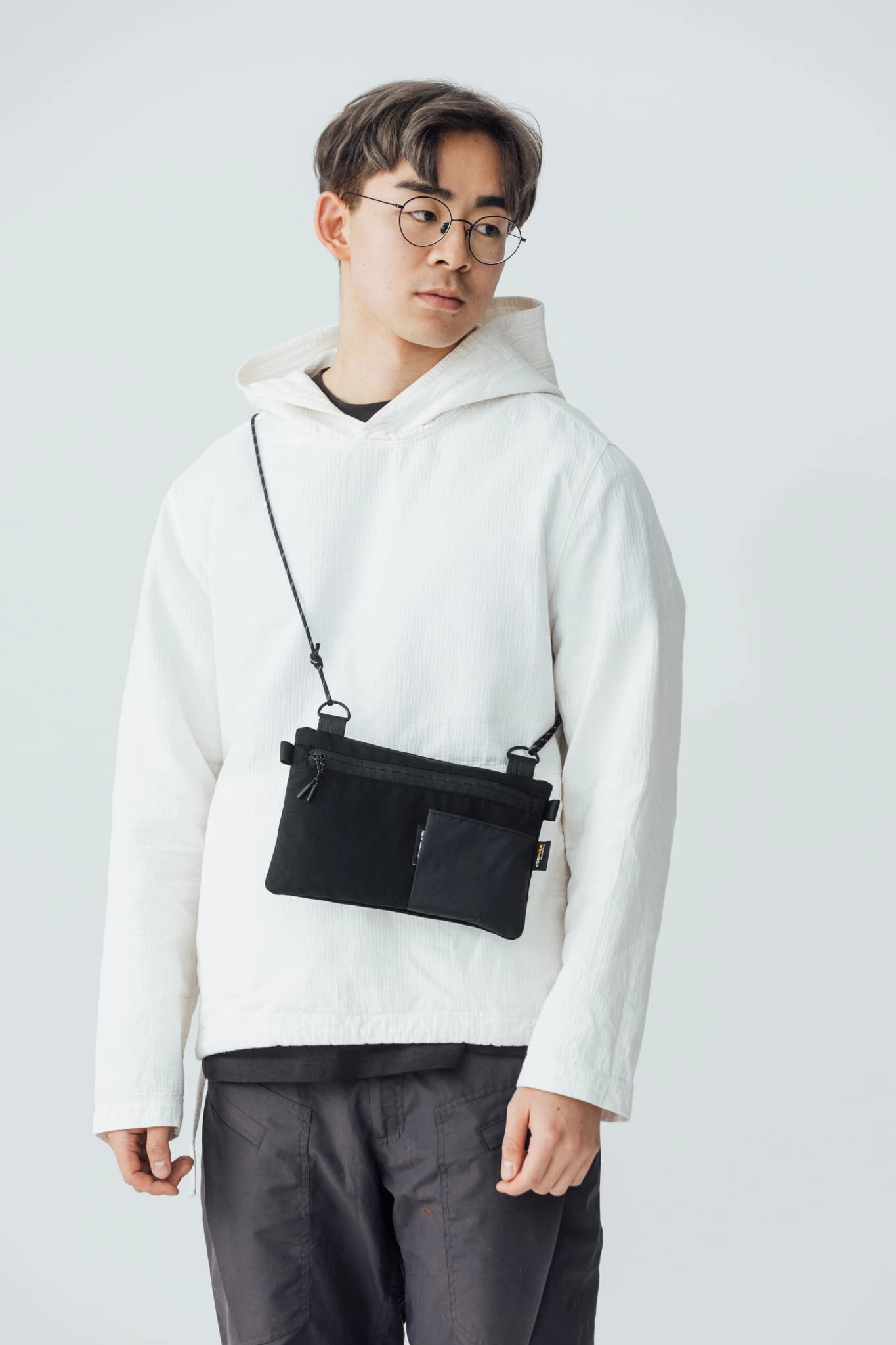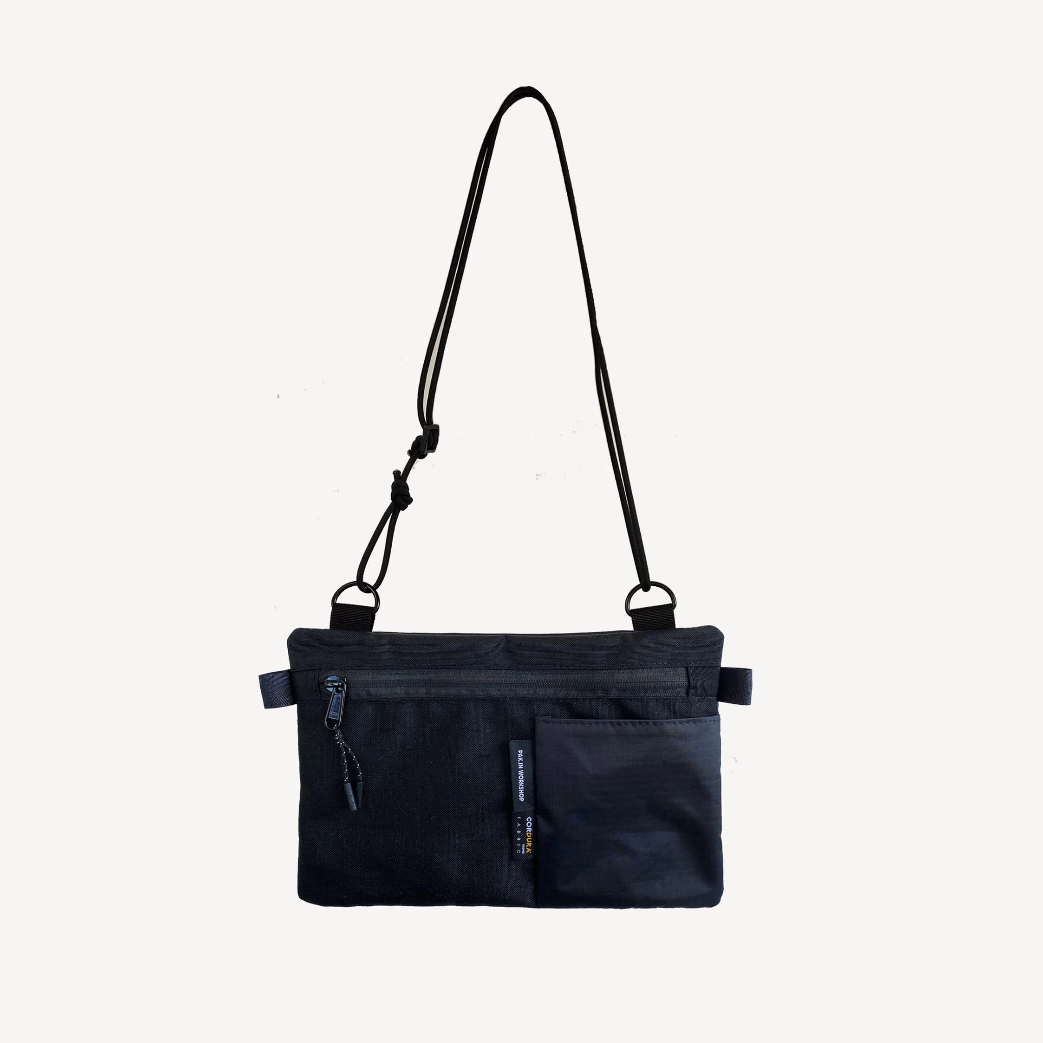 Sacoche is for those who don't want to carry anything more than a wallet, phone and keys — but want them always at hand. Flat shape lies close to the body and doesn't interfere with movement. Suspended on 5mm Paracord — light, simple, effective. Handmade in Poland.
